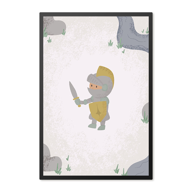 De foto in lijst, verkrijgbaar in twee uitvoeringen. De gewone waar de foto de hele lijst vult of de passe partout variant, waar de foto iets kleiner wordt, maar er nog wel een witte rand omheen zit. De passe partout kan zorgen voor iets meer rust! Op de poster valt een stoere ridder met een getrokken zwaard te zien!