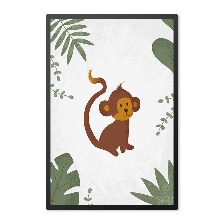 De foto in lijst, verkrijgbaar in twee uitvoeringen. De gewone waar de foto de hele lijst vult of de passe partout variant, waar de foto iets kleiner wordt, maar er nog wel een witte rand omheen zit. De passe partout kan zorgen voor iets meer rust! Op de poster valt een aapje te zien die tussen de bladeren en takken zit.