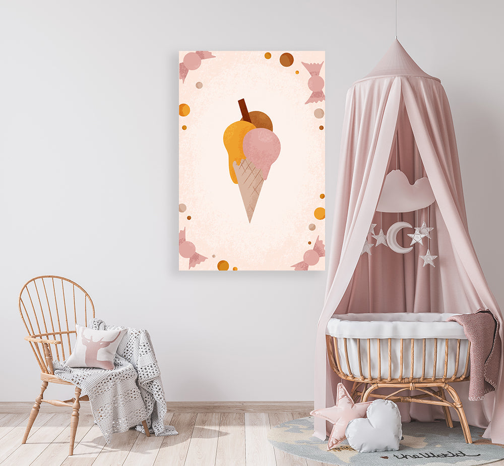 Dit schilderij maakt deel uit van de Ukkie & Boef collectie. Op het schilderij vallen veel snoepjes te zien in het midden van het schilderij staat een ijsco afgebeeld die al langzaam aan het smelten is! Het schilderij is verkrijgbaar op aluminium, canvas en plexiglas in vier verschillende formaten.