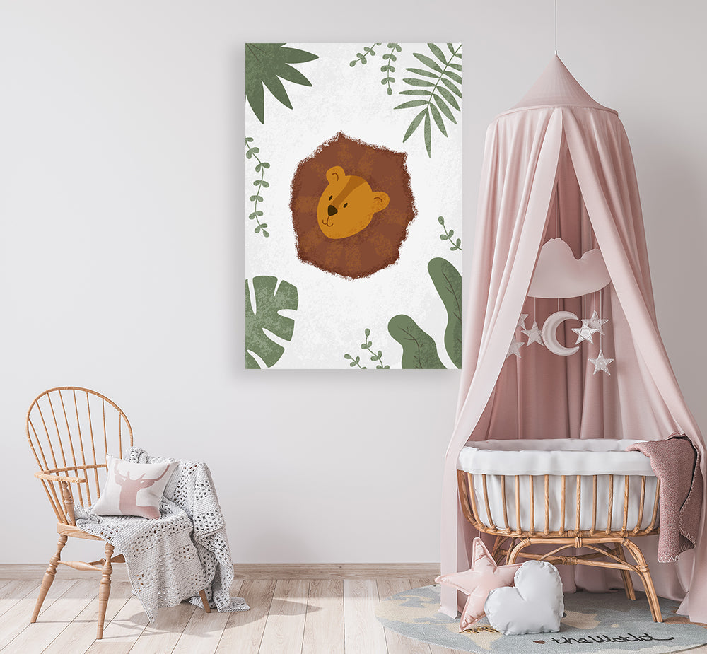 Dit schilderij maakt deel uit van de Ukkie & Boef collectie. Op het schilderij vallen veel bladeren te zien, een natuurlijke omgeving! In het midden van het schilderij valt een kop van een leeuw te zien. Het schilderij is verkrijgbaar op aluminium, canvas en plexiglas in vier verschillende formaten.