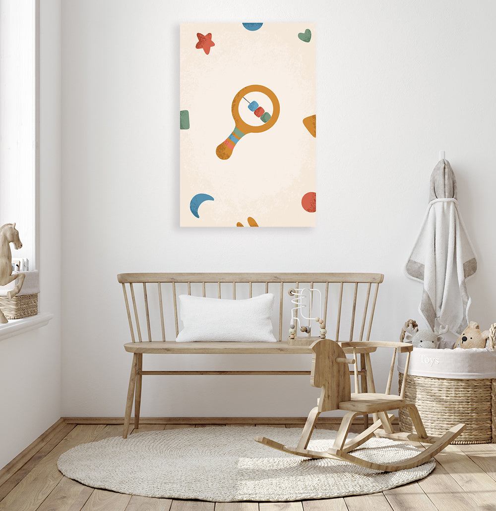 Dit schilderij maakt deel uit van de Ukkie & Boef collectie. Op het schilderij valt een kinderspeeltje te zien namelijk een rammelaar! Het schilderij is verkrijgbaar op aluminium, canvas en Plexiglas in vier verschillende formaten.