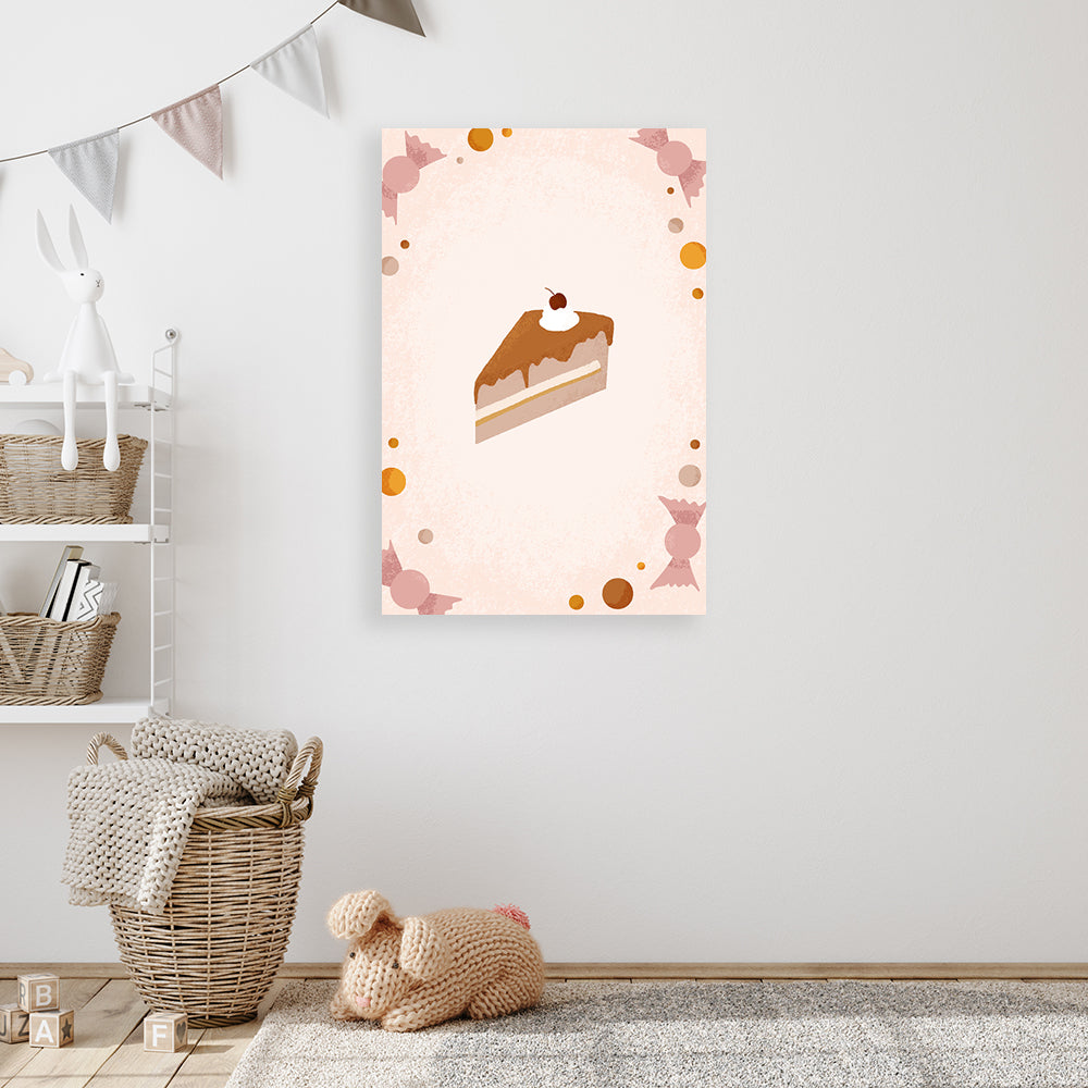 Dit schilderij maakt deel uit van de Ukkie & Boef collectie. Op het schilderij vallen veel snoepjes te zien in het midden van het schilderij ligt een stukje taart! Het schilderij is verkrijgbaar op aluminium, canvas en plexiglas in vier verschillende formaten.