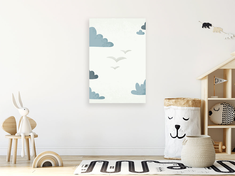 Dit schilderij maakt deel uit van de Ukkie & Boef collectie. Op het schilderij vallen vliegende vogels te zien. Het schilderij is verkrijgbaar op aluminium, canvas en Plexiglas in vier verschillende formaten.