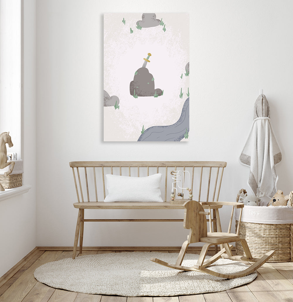 Dit schilderij maakt deel uit van de Boef & Ukkie collectie. Op het schilderij valt een zwaard te zien die vast zit in een steen langs een weg. Het schilderij is verkrijgbaar op aluminium, canvas en Plexiglas in vier verschillende formaten.